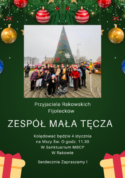 - Zapraszamy na niedzielny Jarmark Bożonarodzeniowy, który rozpocznie się o godz. 13:00 na rakowskim rynku. Szczegóły na plakacie.